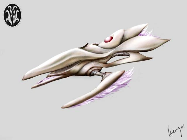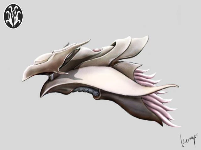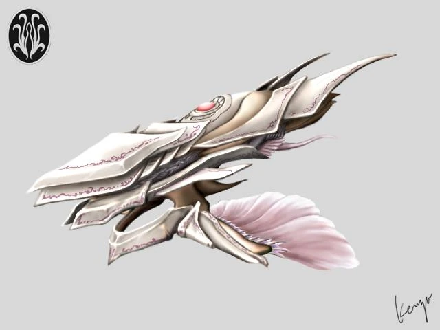 A winged battleship, presumed to be similar to a UGSF Escort Destroyer. Although it looks soft, most of the structural material is made of silicon, which is reinforced by passing ESP through it.
